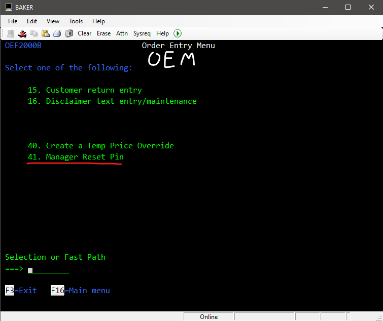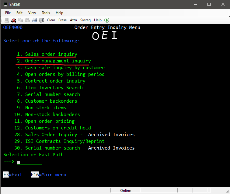 2. Order management inquiry - Check for a user's Order Writer (3-character PIN)